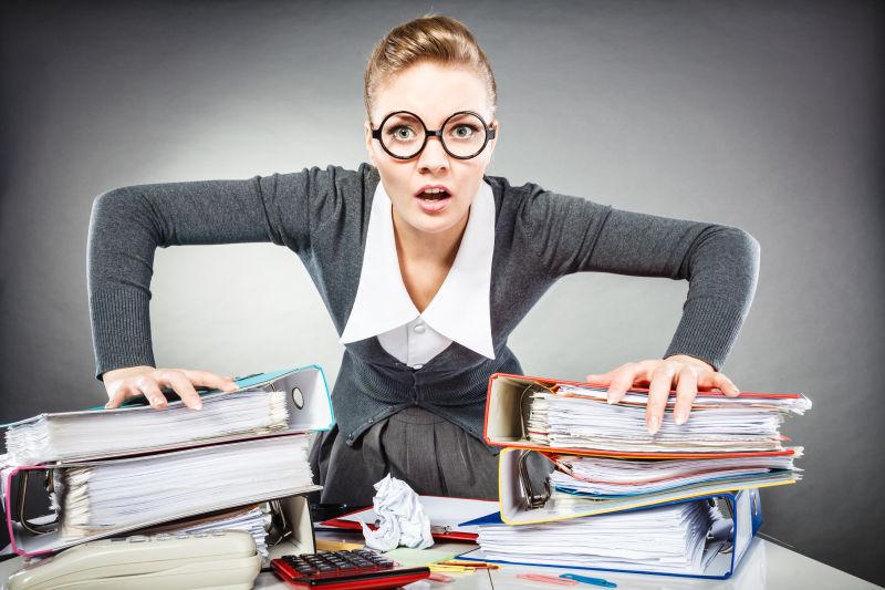 抱着一堆文件并且非常劳累的女商人图片ID: 202603