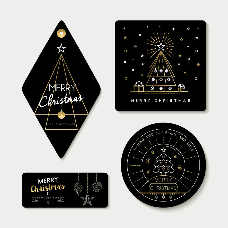 黄金圣诞树装饰贺卡矢量设计图片ID: 421519