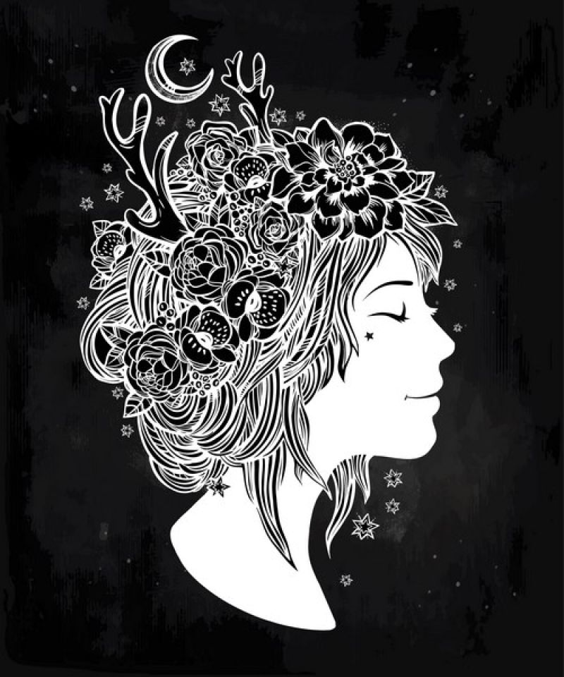 黑白魔幻夜精灵艺术矢量图图片ID: 399710