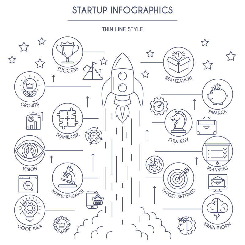 抽象矢量启动概念的细线图标设计图片ID: 486576
