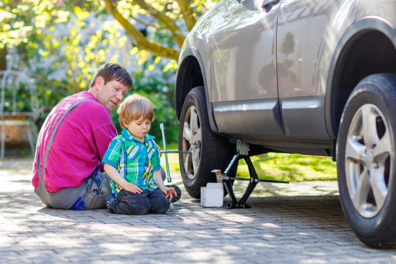 父亲和小男孩修理汽车和换轮子图片ID: 113546