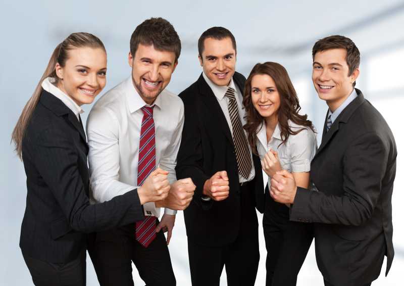 五个微笑的握着拳头的业务人员