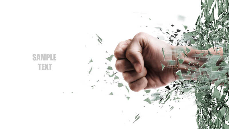 女拳头打碎玻璃窗