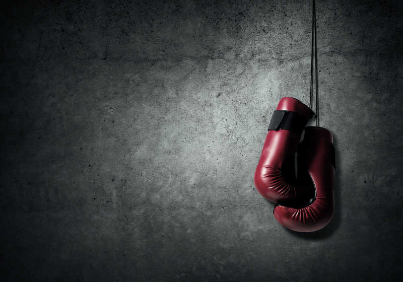 暗色背景下的红色拳击手套