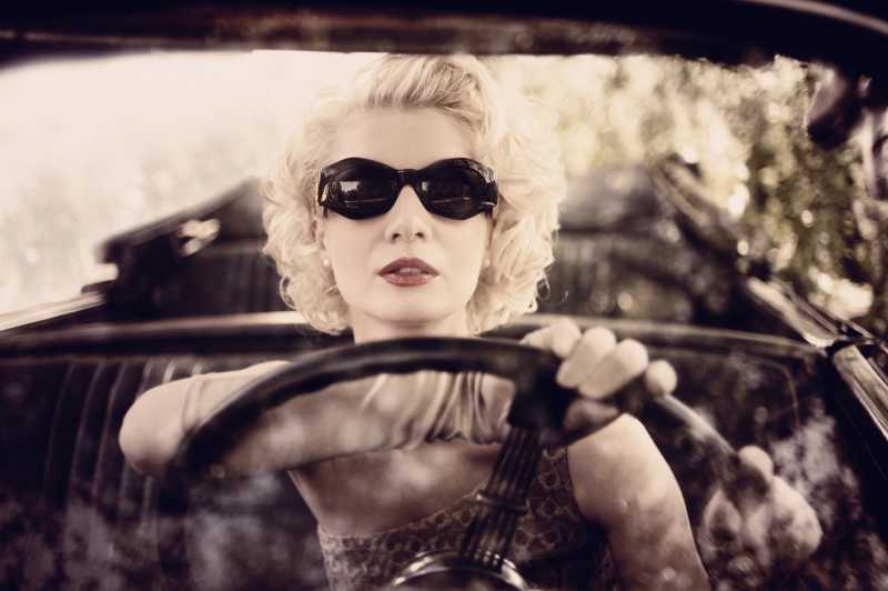 复古的女人在车上拍照图片ID:65342