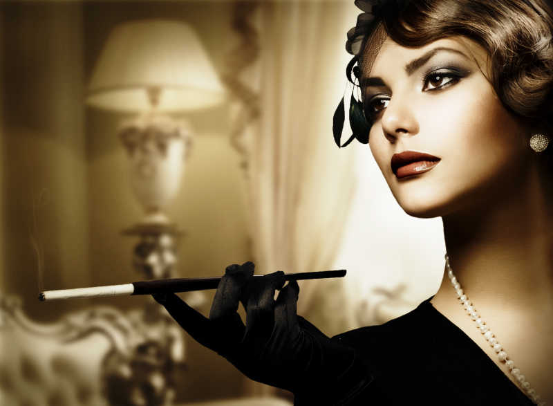 复古女性拿着烟的肖像图片ID:65343